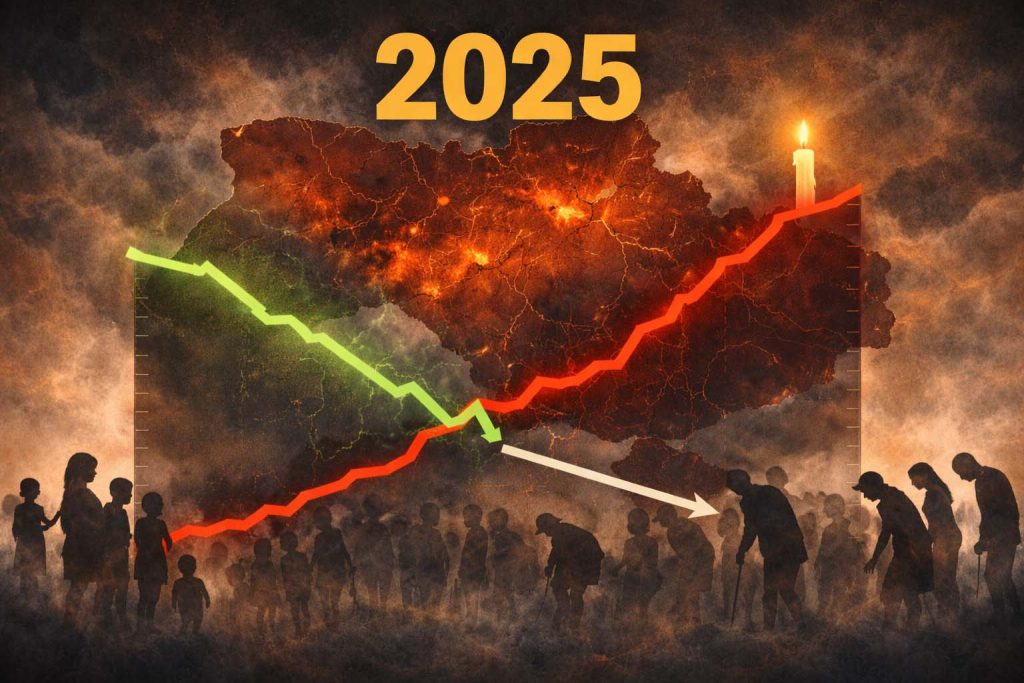 За 2025 год в Украине родилось 168 778 детей , в то время как умерло 485 296 человек. Демографическая «математика» войны простая и жесткая: соотношение составляет 1 к 3 не в пользу жизни.